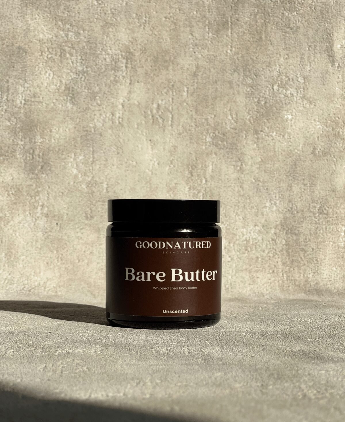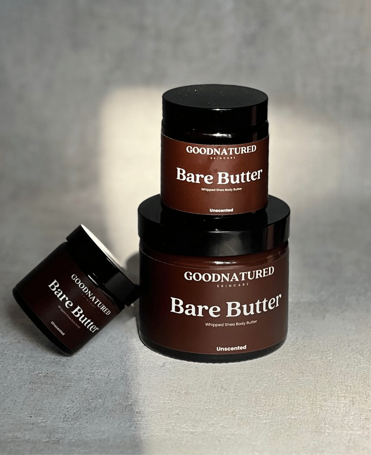 Bare Butter harnesses the botanical powers of shea butter, shea oil, and East African Shea Nilotica, to create the creamy all-over body butter of your dreams. Rich in vitamins A, E & F, this triple shea goodness is cold blended to retain its nutrients and maximise skin benefits. Unscented and suitable for even the most delicate skin, this multipurpose butter can be used on your entire body from head to toe, gestation to geriatrics, and on all skin types. Coconut oil-free, we have intentionally formulated a moisturising butter that is non-comedogenic (does not clog pores). Great for all seasons and weather, this luxuriously indulgent moisturiser simply melts into your skin for butter soft, silky smooth skin all day and night long.